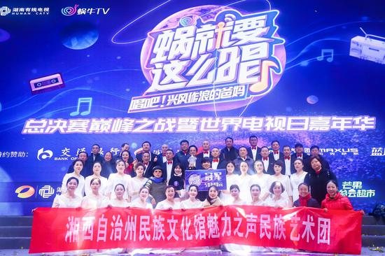 红网时刻湘西11月24日讯 11月21日-22日,湖南有线主办大型全民互动合唱比赛“蜗就要这么唱”全省总决赛暨世界电视日嘉年华在长沙世界之窗圆满举行,进入决赛的16支合唱团来自全省14州市,从线上线下的近千支海选队伍中脱颖而出,决赛分为16进8半决赛与巅峰对决两个阶段的比拼。最终,来自湘西赛区的州民族文化馆魅力之声艺术团获得本届合唱比赛的总冠军,株洲赛区韵动株洲艺术团、郴州赛区三色花组合分别获得亚军和季军。冠军成团曲《嗨唱这首歌》同步进行了首发。