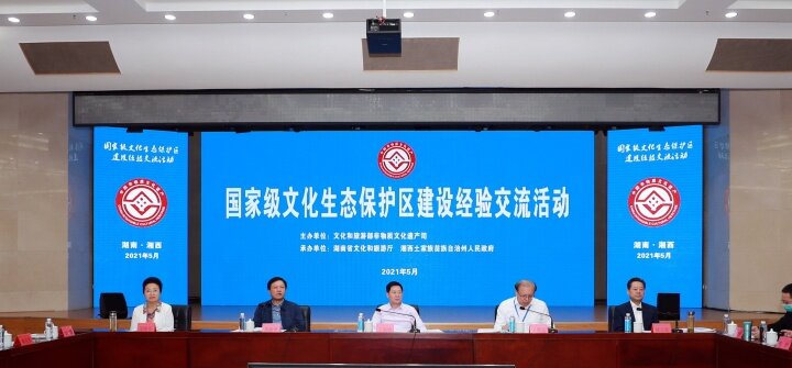 交流会上,湘西苗绣、凤凰蜡染、踏虎凿花、土家织锦等湘西非遗代表性项目纷纷亮相,全方位展示了我州丰富多彩的非遗文化。王晓峰为国家级文化生态保护区现场授牌,国家级文化生态保护(实验)区代表作交流发言。武陵山区(湘西)土家族苗族文化生态保护区等9组文化生态保护区获国家级文化生态保护(实验)区称号。