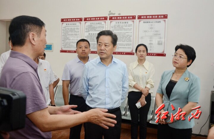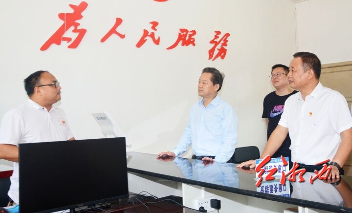 虢正贵在永顺县高坪乡三角岩村便民服务大厅详细了解村级公共服务建设情况。团结报记者 刘炜 摄