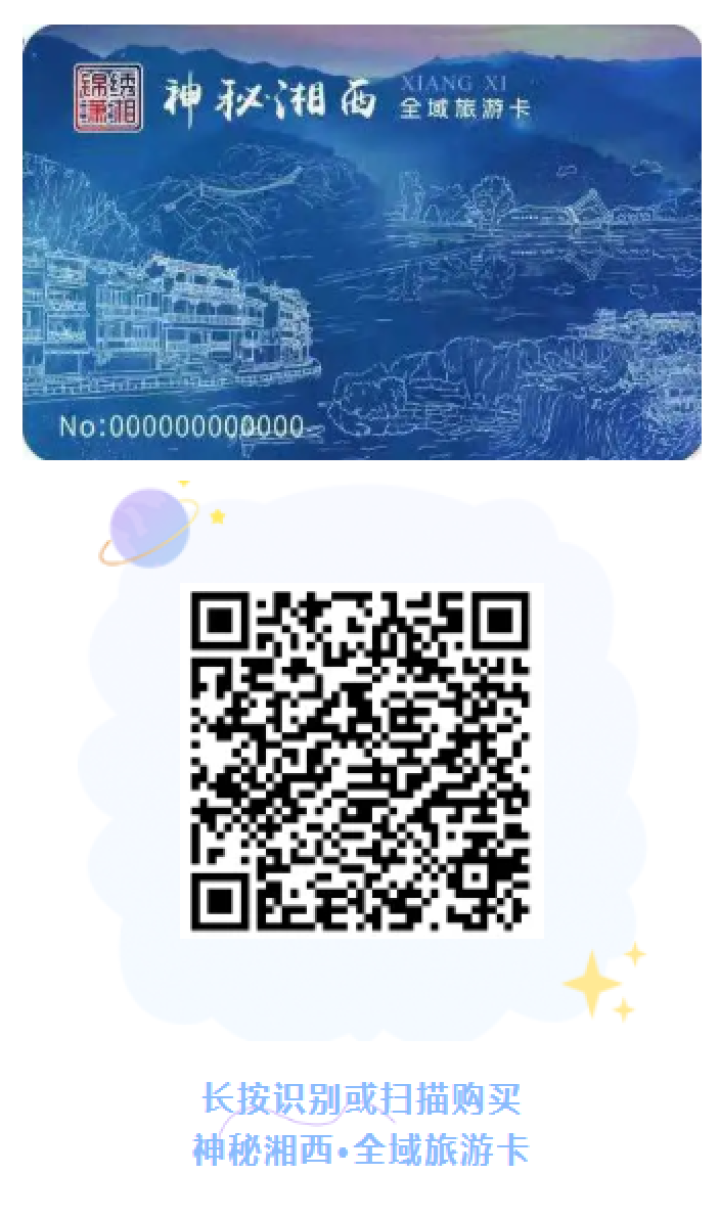 当然除此之外,您还可以选择购买198元的“神秘湘西全域旅游卡”,更是可以1年免费畅游湘西各个A级景区哦!