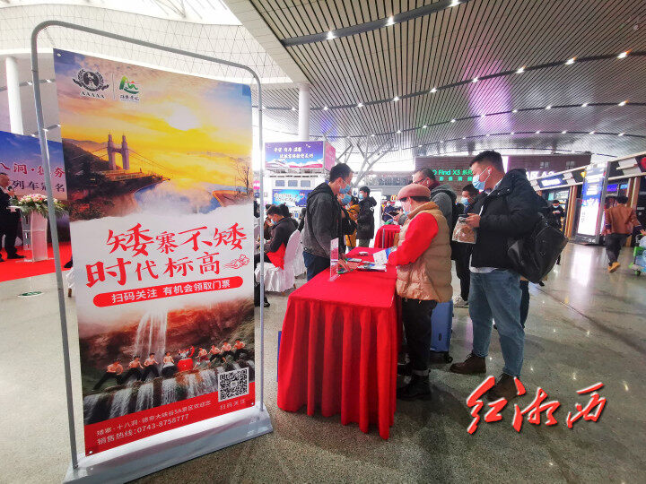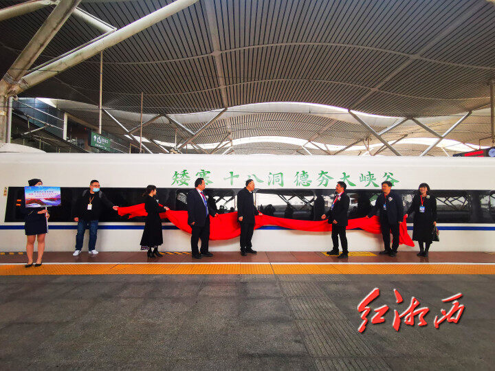 冠名首发仪式在长沙南站举行。现场,长沙市长沙南站大厅旅客不断,工作人员向旅客赠送了德夯大峡谷、矮寨大桥等景区门票。