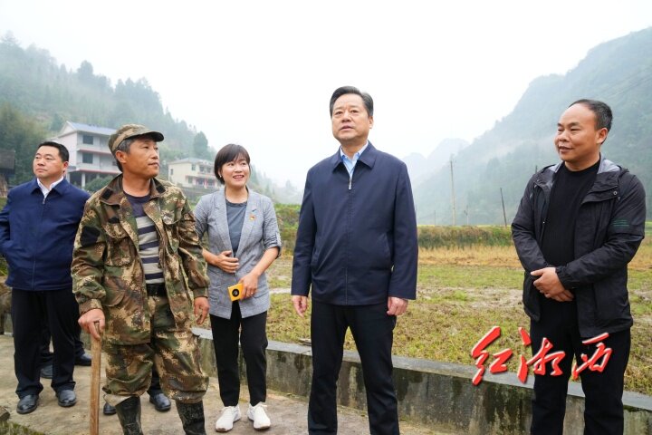 红网时刻湘西3月17日讯(团结报全媒体记者 李再兴 摄影 团结报全媒体记者 刘炜)3月16日,湘西州委书记虢正贵到古丈县调研粮食生产、春耕备耕及春茶采摘加工销售等工作。他强调,要始终牢记习近平总书记重要指示要求,心怀“国之大者”,坚决扛牢粮食安全政治责任,不误农时抓好春耕备耕工作,大力发扬艰苦奋斗精神,带领群众创造美好幸福生活。