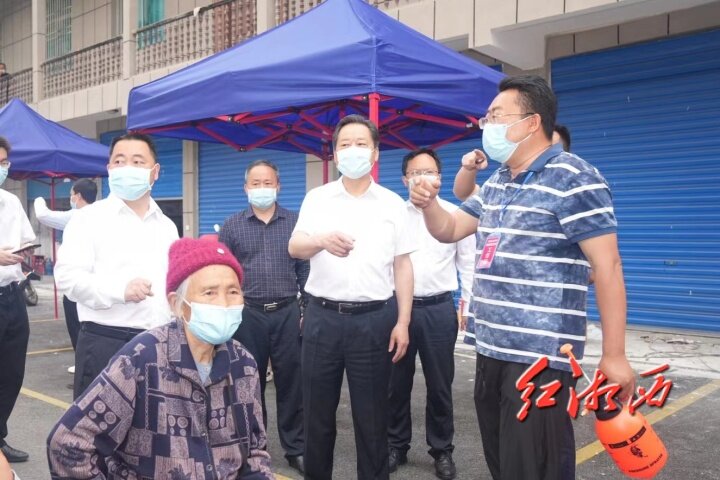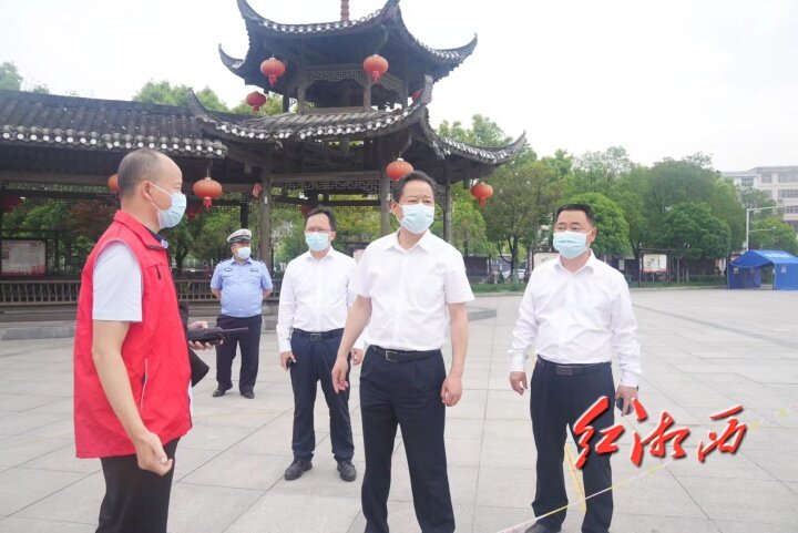 5月7日上午,湘西州委书记虢正贵在龙山县督导检查疫情防控工作。本组图片均由团结报全媒体记者 刘炜 摄