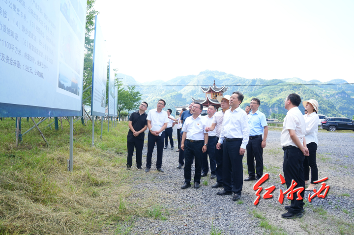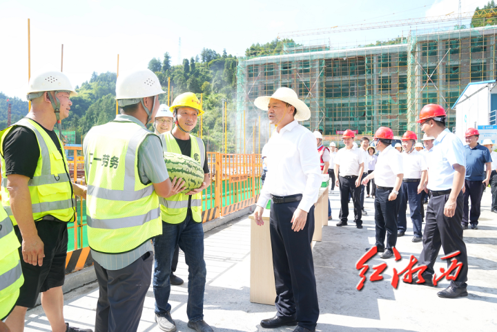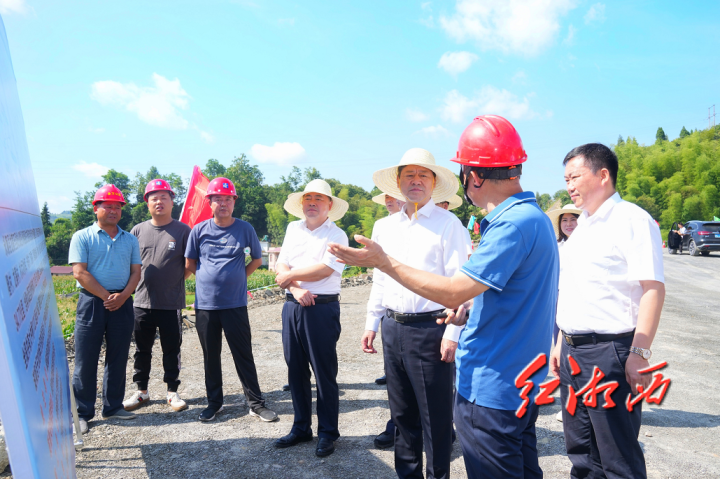 7月13日,湘西州委书记虢正贵到永顺县、古丈县调研重点项目建设工作并看望慰问一线施工人员。 本组图片由团结报全媒体记者 刘炜 摄
