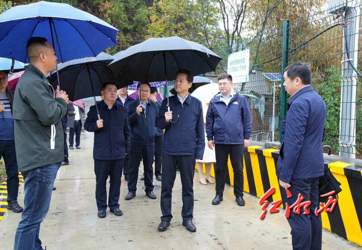 久违的秋雨滋润湘西大地,带来丰收希望。虢正贵冒雨来到吉首市勤丰村、狮子庵水厂、八月湖水库,凤凰县长潭岗水库等地调研供水保障工作。他说:“党的二十大报告提出,要促进人与自然和谐共生。供水保障关乎民生,也关乎可持续发展。”他强调,要加强水质监测,强化水源地日常管理和保护,筑牢供水安全屏障。要认真分析现有水源储量、用水需求和水源补给情况,统筹做好水资源优化配置,确保极端天气条件下供水安全、稳定。