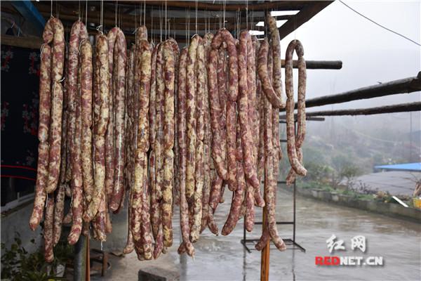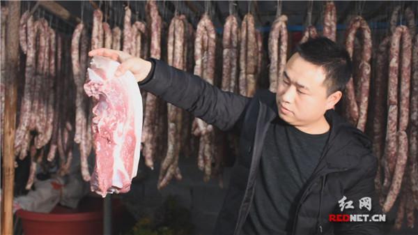 “每逢新年,湘西人都会自家熏腊肉、香肠,然而选择什么样部位的肉来制作是非常有讲究的”。滕波告诉记者,平时熏制腊肉选择的是五花肉,这样熏出来的腊肉肥瘦相间,口味肉香不腻;而制作香肠选择的是前腿肉,七分瘦肉三分肥肉,肉感紧致不油腻。