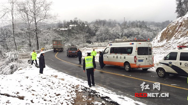 花垣县辖区长乐乡道积雪较多,目前已采取交通管制;吉卫县道路面有少量结冰,没有防滑链的车辆无法同行,目前已采取交通管制;辖区国道麻栗场段路面有少量积雪,但不影响车辆通行。