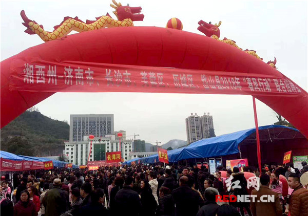 红网时刻湘西3月1日讯(保靖分站记者 彭振 张承印 通讯员 张雯)3月1日,“湘西州-济南市、济南市历城区、长沙市、长沙市芙蓉区、浙江岱山县2018年‘春风行动’联合招聘会保靖专场招聘会”在该县人民广场举办。山东省济南市人社局副局长、就业办主任窦进科,湘西州人力资源和社会保障局局长石龙出席并讲话,符家盛、黄宇、宋梦扬、胡承元等县领导出席招聘会。
