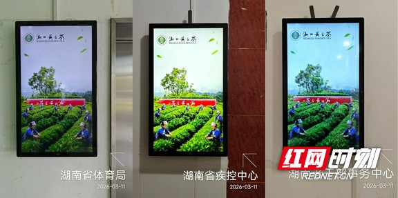 红网时刻新闻3月14日湘西讯(记者 向力)近日,湘西黄金茶进入采摘高峰。吉首市茶叶产业发展服务中心携手红网千屏联播,通过长沙五一广场、黄兴广场热门商圈,以及党政机关、企事业单位、写字楼和高校等室内电梯LED屏展示湘西黄金茶主题海报,邀请市民游客品味限时的“春日鲜爽”。