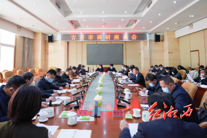 随后,虢正贵主持召开座谈会,听取吉首市工作情况汇报,对吉首市取得的成绩给予充分肯定。他指出,开局关系全局,起步决定全程,吉首市要有新担当、新作为,走在前,作示范。要抓学习,既要学好有字之书,坚持用习近平新时代中国特色社会主义思想武装头脑,又要学好无字之书,多向群众学、向实践学,坚持学以致用;要抓高质量发展,大力发展实体经济,推动一二三产业深度融合发展,做大做强县域经济;要抓统筹,统筹好疫情防控和经济社会发展,统筹好发展和安全,统筹好高质量发展与民生事业建设;要抓廉洁,加强党风廉政建设,锲而不舍落实中央八项规定及其实施细则精神,打造忠诚干净担当的干部队伍。