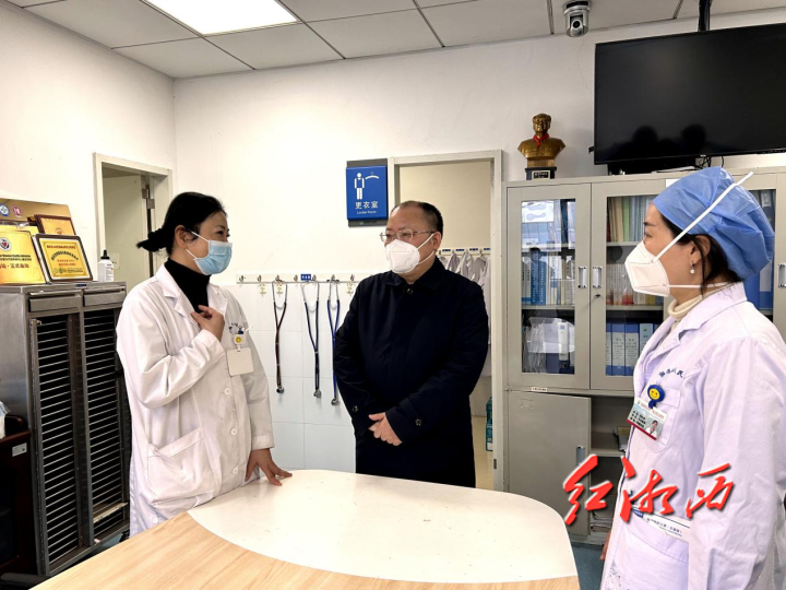 在州人民医院,李平与省劳动模范朱灿交谈,向奋战在一线的医护工作者辛勤付出表示感谢。同时鼓励朱灿继续发扬劳模精神、发挥模范作用,立足专业优势,做好医疗队伍“传帮带”,不断提升医疗技术服务水平,当好人民群众生命健康的守护者。