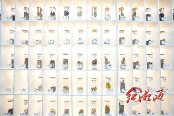 展柜上的各种中药材