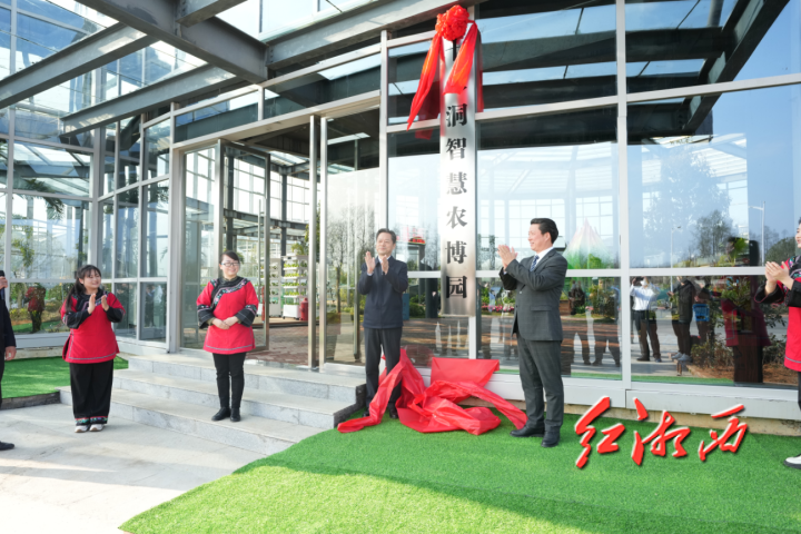虢正贵、廖良辉共同为十八洞智慧农博园揭牌。