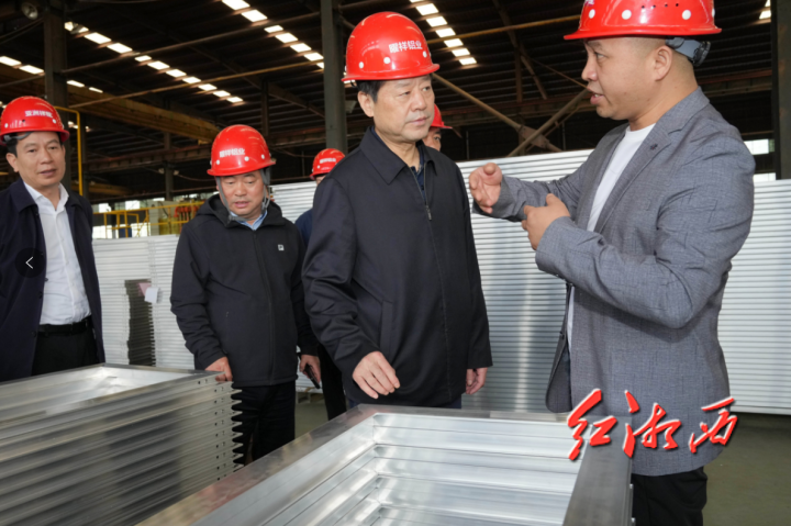 伴随着机器的轰鸣声,一款款形态不一、用途各异的合金材料从生产线上流出。虢正贵来到位于泸溪高新区的湖南鑫海环保科技有限公司、湖南祥程科技有限公司、湖南洪量新材料科技有限公司,走进生产一线,详细了解企业经营管理、产品销售、研发创新等情况以及下一步发展规划。他说,希望泸溪县贯彻落实好州委、州政府确定的目标任务,始终坚持“工业强县”发展战略,突出产业特色,加大科技投入,深化园区体制机制改革,持续发力培育壮大产业集群,全力推动县域经济高质量发展。企业要牢固树立绿色环保和安全生产理念,履行好主体责任,严格规范企业管理,改进生产工艺,积极走绿色可持续发展之路。