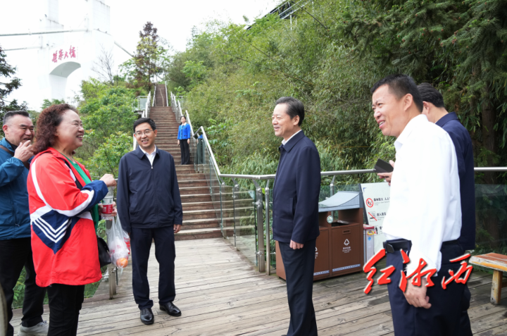铜仁市党政代表团先后考察了凤凰磁浮、夜经济、凤凰古城·凤仙境·森林温泉度假区、矮寨奇观旅游区、酒鬼酒股份有限公司、吉首大学、友阿·武陵国际商业新城、湘西雪花啤酒有限公司及湘西民族文化园。大家一路走、一路看,就如何进一步加强两地合作进行了交流。